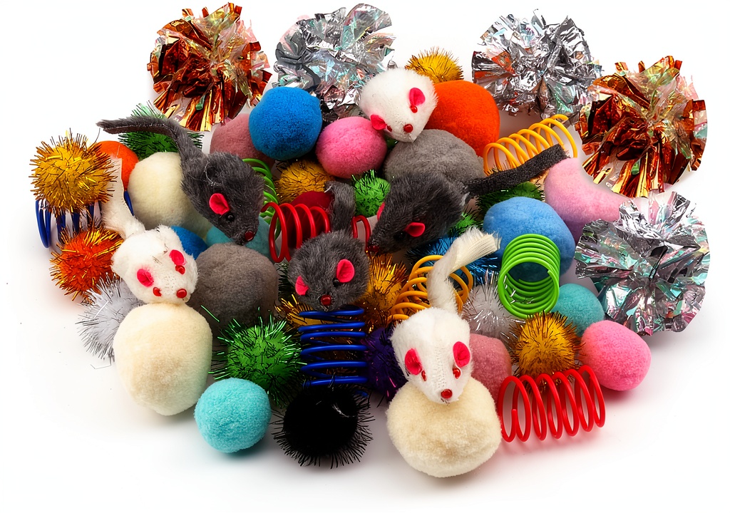 PietyPet Cat Toys Pack displayed with balls, springs, and mice